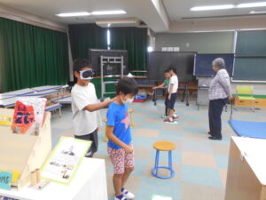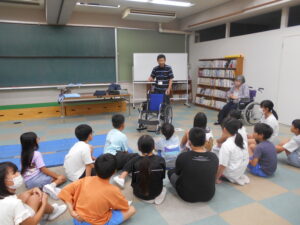 9月17日(水)、UDうれしのの方に来ていただき、ユニバーサルデザインについてのお話を聞き、車いすやアイマスクを使った体験活動を行いました。時間の関係ですべての活動を全員がすることができませんでしたが、友だちの動きを観察して、自分ならどうするだろうか考えながら学習をすることができました。