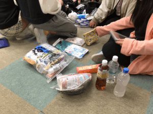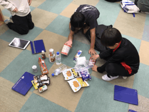 10月22日(水)5限目、『小野江地域防災マニュアル』を活用して、備蓄品について考える学習をしました。17日(金)には、おうちの備蓄品について調べる宿題にご協力いただきありがとうございました。どのおうちにも備蓄品があることが分かりました。防災マニュアルを活用して「必要なものばかりがマニュアルにはのっていた」「自分が思ったよりも家に備蓄品があった」「飲料や食料が多かった」「食料は、長期保存するから確認したら、賞味期限切れの物があった」等の意見が出ました。その後、防災リュックについて考えました。実物を見せ合いながら、自分の用意したものとの違いに気づき、ラジオやライト等を入れたいとの振り返りが出ました。現在、37人中12人が防災リュックを用意してあるとのことでした。防災の学習を進めるなかで、防災意識が少しずつ高まっていったら嬉しいです。
