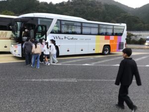 予定を変更して、琵琶湖が見える「大津サービスエリア」でトイレ休憩を取りました。この後、安濃サービスエリアで休憩する予定です。バスは、順調に「小野江」に向かっています。数えきれないくらいの楽しい思い出をもって、子どもたちは帰って行きます。おうちに着いたら、子どもたちの話をしっかり聴いてあげてください。