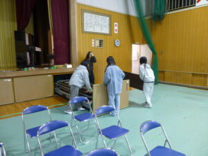 体育館では、机・椅子並べや白布かけなど、式場としてふさわしい雰囲気を整えるために、一つひとつの作業を丁寧に進めていました。また、1年生教室では、掲示物の準備や飾り付けを行い、新しく入学してくる1年生が安心して学校生活を始められるよう、心を込めて作業していました。