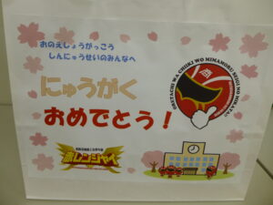 4月7日(火)、松阪北部商工会青年部の方が、地域の安全を守るヒーロー「赤レンジャイ」の姿で1年生の教室を訪問してくださいました。子どもたちは突然のヒーローの登場に大喜び。防犯ベルと 交通安全キーホルダーも届けていただき、「ありがとう!」と教室は明るい笑顔に包まれました。
