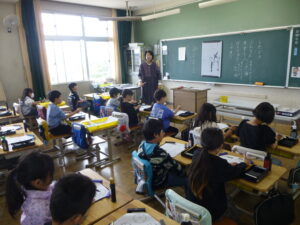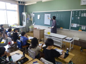 4月13日(月)に、高校で書道を教えてみえた地域の方にお越しいただき、3年生が初めての毛筆に挑戦しました。筆の持ち方や基本の線の書き方を丁寧に教えていただき、子どもたちは真剣な表情で取り組んでいました。初めての毛筆に戸惑いながらも「土」という字を完成させた子どもたちは、「楽しかった!」と笑顔いっぱいでした。地域の皆さまのご協力に感謝し、これからの学習につなげていきます。